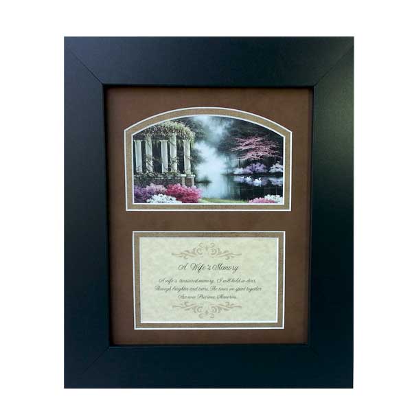 Exclusive to Kentucky Arts and Gifts, our Wife's Memory Poetry Art is a beautiful way to acknowledge the memory of a loved one. High quality images are paired with each poem. Each piece of art is matted in neutral color mat and beautifully framed in frame of your choice. You will also choose a preferred scene; either, country landscape, church scene, or garden landscape. Each order will ship complete and ready for your immediate enjoyment. (see the frame color chart under 'Additional Info'.)